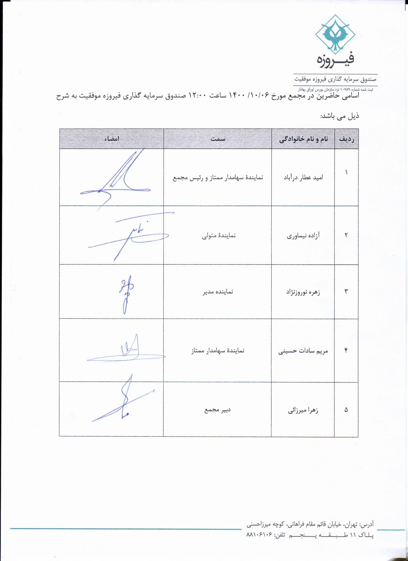 | مقدمه | اسامی حاضرین در جلسه مجمع دوشنبه مورخ 1400/10/06ساعت 12:00 |