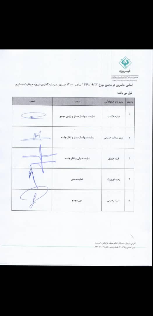 صورتجلسه تعیین صاحبان امضاء مجاز صندوق مورخ 1399/04/04 ساعت13:00